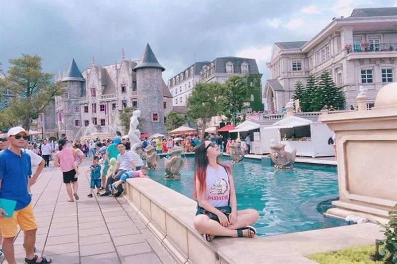 09h00: Đoàn có mặt tại chân Bà Nà Hills, du khách thưởng thức những giai điệu nhạc nước hấp dẫn và chụp hình lưu niệm trong khi chờ HDV làm thủ tục đưa đoàn lên cáp treo.