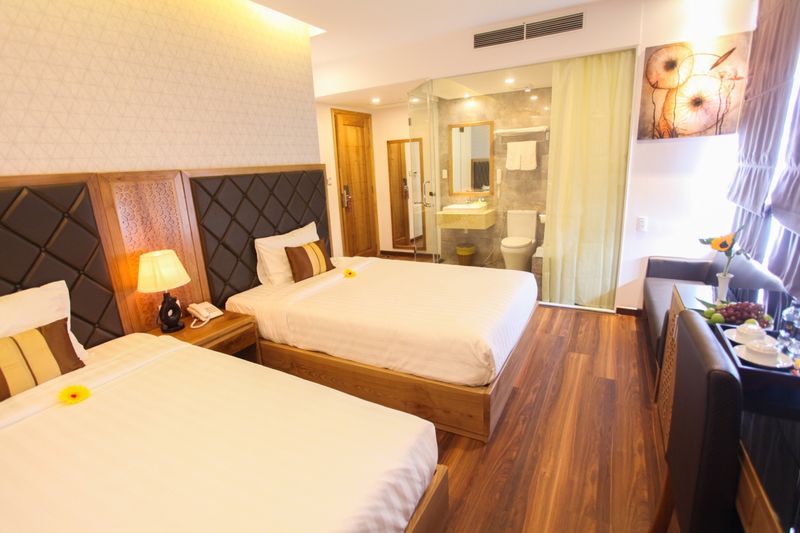 Đạt tiêu chuẩn 3 sao +, gồm 56 phòng khép kín với đầy đủ các trang thiết bị hiện đại, tiện nghi và các dịch vụ bổ sung như: phòng hội nghị, phòng máy massage; phòng tập Gym; nhà hàng; quầy Bar; bể bơi, bể sục nước nóng ở tầng thượng - nơi du khách có thể ngắm nhìn toàn cảnh của thành phố cũng như bãi biển Đà Nẵng.