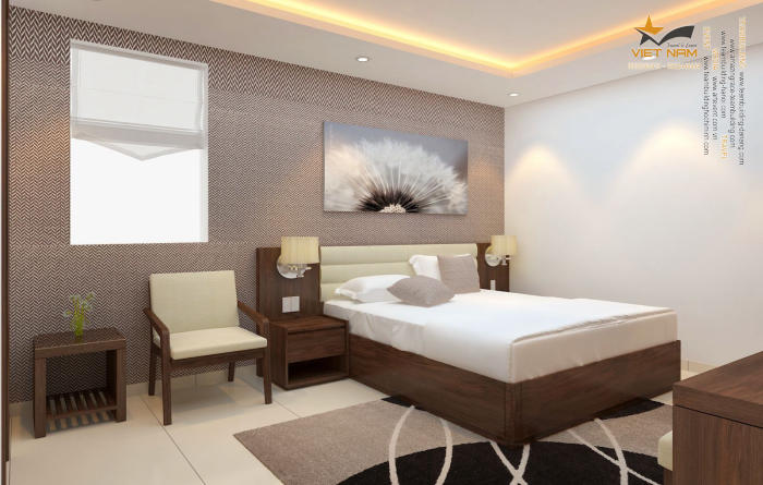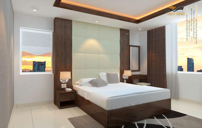 Phòng ngủ được thiết kế tinh tế, hiện đại cùng tiện nghi sang trọng, đầy đủ