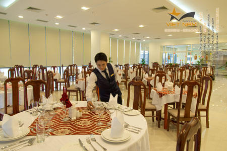 Nhà hàng được thiết kế sang trọng với thực đơn phong phú, đa dạng phục cả các món Âu và Á