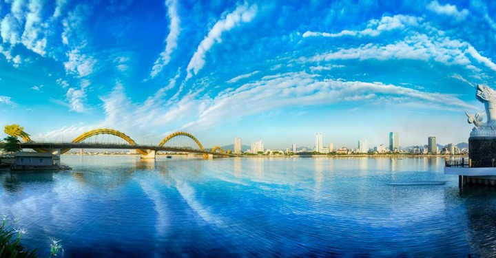 Đà Nẵng là một thành phố du lịch nổi tiếng. Ngoài những điểm đến như Bà Nà, Hội An, cù lao Chàm,….thì con sông Hàn và những cấy cầu bắt qua nó cũng là những cảnh đẹp tuyệt vời. Đã có dịp đi qua Đà Nẵng, hãy một vòng chạy qua cả 7 cây cầu có kiến trúc xây dựng độc đáo, lạ mắt. Gần đây nhất, phải kể đến cầu Rồng – cây cầu mới vừa được hoàn thành cách đây không lâu. Sở dĩ đặt tên nó là Cầu Rồng, vì trên cầu không đơn thuần là lan can hay dây văn như mọi cây cầu lớn trong nước khác, mà nó được thiết kế và xây dựng thành tạo hình con rồng uốn lượn tinh xảo. Cầu Rồng đẹp nhất về đêm, khi tất cả đèn màu bật lên, phản chíu vào nhau tạo nên bức tranh muôn sắc màu bắt qua song, sáng cả một vùng trời.
